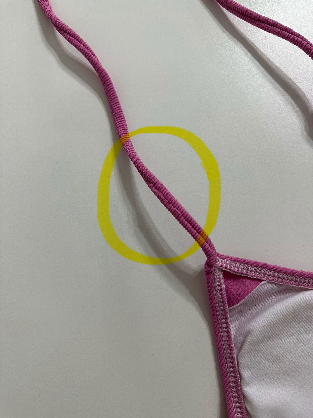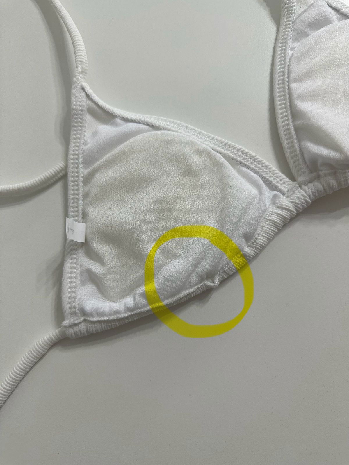 -Fallas: ESTETICAS. ej: sentido del morley en otra dirección en una taza que en otra, Pdobles costuras, puntos saltados o desprolijos en las tiras o en la bikini, y/o machitas mínimas. VER FOTOS!!