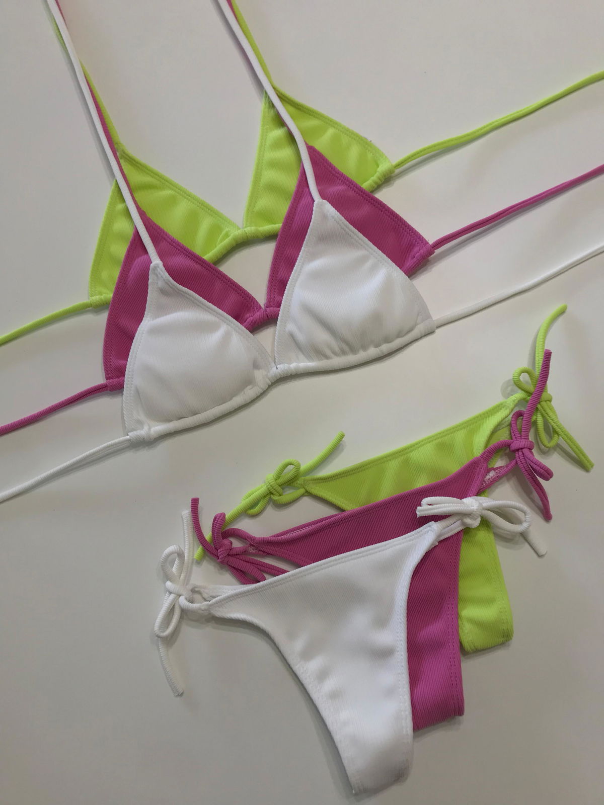- La bikini puede contener pequeñas manchitas que pueden salir o no con el lavado, arrugas en la tela, una doble costura o algún punto corrido/saltado. VER FOTOS DE EJEMPLOS.