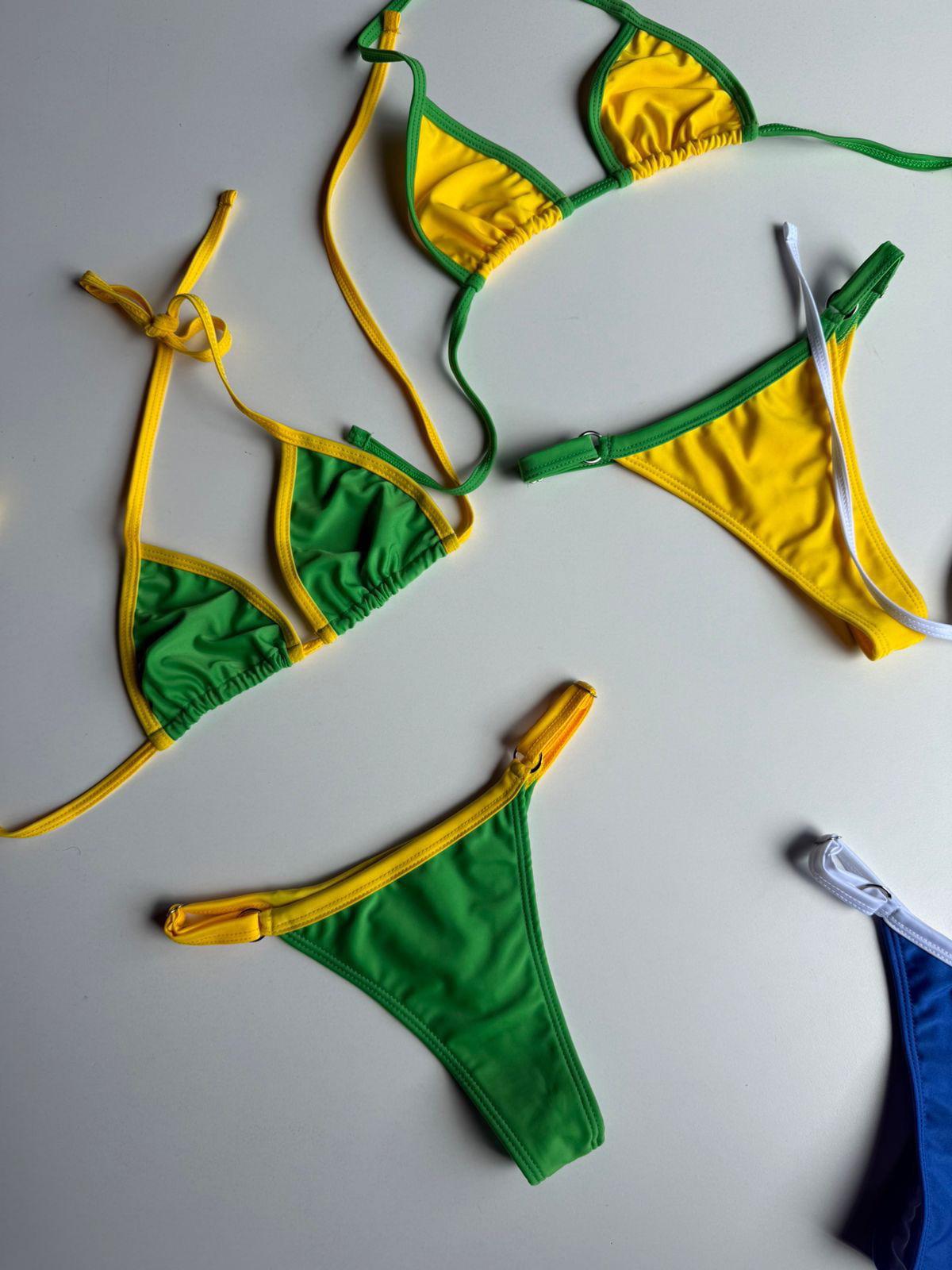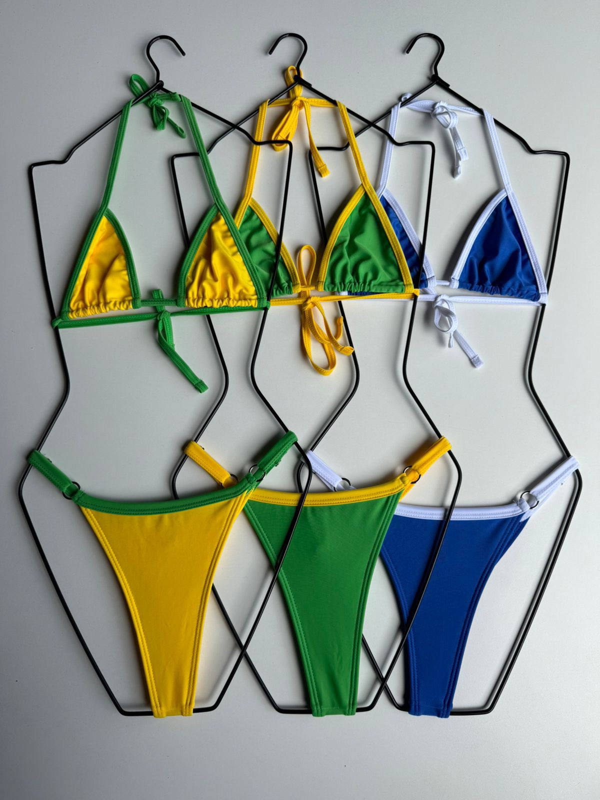 bikini triangulo regulable combinada, colaless regulable de corte y tamaño clásico.